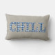 Un coussin lombaire amusant avec le mot "CHILL" en lettres remplies d'un chèque bleu en vichy motif sur un arrière - plan de couleur hébraïque (burlap).