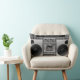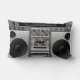 ghetto cool de style hip-hop rétrospectif, flaster boom box radio graphique. Nuances de gris argenté et de noir avec un magnétophone à cassette simple et réglage radio. Les gros haut-parleurs ont l'air que vous allez piloter un peu de basse. Copyright de conception © Cutecomfy.com