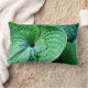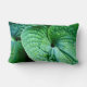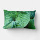 Des feuilles hosta luxuriants qui scintillent avec des gouttes de rosée font un coussin de lancer étonnant.