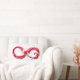 Infinity symbole of continuous stream of red pouring into glass glass glass on white background.