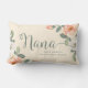 Cet élégant coussin dispose d'un arrière - plan pêche doux avec des pois blancs subtils, de pêche tendance et de fleurs blanches avec beaucoup de feuilles verts. Le mot "nana" apparaît dans un joli script manuscrit, et il y a un endroit à personnaliser avec votre nom.