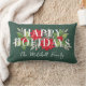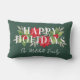 Cette typographie florale moderne lombaire de Noël lance l'oreiller avec le libellé "Joyeux Vacances" encadré par un élégant motif floral d'hiver et aquarelle verdoyante. Comprend des feuilles saints et des baies, des fleurs de poinsettia et des branches feuillues. Personnalisez le texte du script avec le nom de famille ou tout autre texte personnalisé. Arrière - plan vert foncé aux couleurs rouge, vert et blanc.
