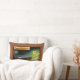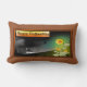 "Happy Halloween" est imprimé sur cette bannière, et une maison hantée est allumée dans le fond. On voit une sorcière et un fantôme voler dans la nuit et un chat noir est assis dans le cimetière. Une fleur d'Halloween jaune et rouge est à l'avant du design. Un dossier brun est ajouté à l'avant et à l'arrière. Ce coussin est également disponible dans un coussin carré.