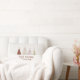Un design festif élégant présente un affichage classe d'arbres de Noël enneigés en rouge, or et rose sur un fond beige crème neutre légèrement rayé. La section inférieure est recouverte de neige blanche avec "Joyeux Noël" en typographie classique élégante. Ajoutez un nom personnalisé ou une ligne de texte personnalisé en script rouge correspondant avec le modèle facile à utiliser. Le design se répète au dos.