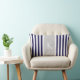 Carreaux ou coussins lombaires de taille de style nautique élégant et moderne avec une conception simple, moderne et élégante de motif rayé qui est décorée d'un monogramme fait sur commande avec votre initiale dans une police de très bon goût. Les rayures verticales de bleu marine et blanches contrastées avec une couleur grise bloquent l'arrière - plan. Personnalisez votre cadeau en ajoutant votre propre initiale. Choisissez votre propres police et couleurs pour lui faire vos propres. Cette conception élégante contemporaine à la mode augmentera n'importe quelle pièce à la maison de dortoir de décor, de salon, de sofa, de chambre à coucher, de bureau, de bateau, d'université ou d'université, adolescents, garçons, filles, bébé, crèche et badine des salles. Choisissez votre taille de coussin ou de coussin.