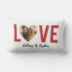 Un Valentines moderne aime le thème de l'oreiller à lancer. Personnalisez-le avec vos noms et photo à l'avant et à l'arrière du coussin.