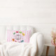 Un coussin personnalisé que vous pouvez personnaliser avec un nom ou n'importe quel texte que vous voulez, entouré d'une jolie floraison décorative. Le design est un cercle de macarons créés avec des aquarelles dans une sélection de jolis pastels et de couleurs vives. L'arrière - plan est un motif rayé rose patiné à l'allure patinée.