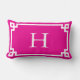 Coussin Rectangle Monogramme de clé grecque rose et blanc chaud