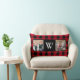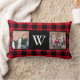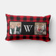 Créez votre propre garde spéciale avec vos photos de famille préférées sur ce coussin de style rustique avec un arrière - plan de plaid de buffle rouge et noir. Deux photos carrés sont encadrées par une bordure noire et le carré central est noir avec un monogramme blanc initial pour vous personnaliser. Remplacez l'exemple de photos de modèle par le vôtre. Parfait pour les photos de famille ou autres. Fait un merveilleux cadeau pour la famille et les amis. Photographie © Storytree Studios, Stanford, CA