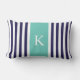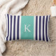 Coussin Rectangle Monogramme de rayures de Teal de marine