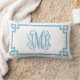 Coussin Rectangle Monogramme de script clé grecque bleu ciel AMR