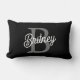 Coussin Rectangle Monogramme moderne élégant Nom noir Gris noir Scri