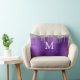 Glam en métal brossé violet et Parties scintillant Coussin Monogram Lumbar personnalisé. Modifiez et personnalisez la conception.
