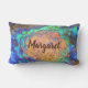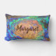 Cet oreiller abstrait à lancer dispose d'un motif en mosaïque brillante qui capture la couleur unique et le motif d'une coquille d'ormeau poli avec votre nom. Les spirales colorées orange, turquoise et violette vibrantes qui entourent le centre de cette photo ont été présentées à la fois à l'avant et à l'arrière de ce coussin. Votre nom apparaît dans contre les carreaux orange vif et peut facilement être personnalisé sur l'écran de commande.