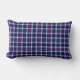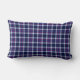 La coussin lombaire colorée présente un motif en plaid moderne bleu foncé aux accents rose et blanc.