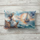 Un paysage marin à l'aquarelle éthérée capturant un moment de calme où l'océan et l'âme se rencontrent. Une femme gracieuse est assise sur un quai patiné, ses cheveux couronnés de fleurs flottant dans la brise tandis qu'un voilier glisse vers l'horizon lumineux. Des tons indigo et corail doux se mêlent à des nuages flottants, créant un équilibre tranquille de lumière et de mer. Cette vision romantique de la côte évoque la réflexion, la liberté et l'attrait intemporel de rivages lointains. Œuvre d'art générée par l'IA.
