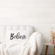 Croire écriture manuscrite | Oreillers de Vacances avec motif de buffle blanc et noir sur le dos. Design moderne de typographie de ferme par Blackberry Boulevard "Believe" écrit dans une police de caractères noir sur un arrière - plan de couleur blanche solide. Autres couleurs disponibles en magasin. Un coussin parfait accent pour votre décor de maison de vacances.