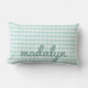 Ce coussin en vichy doux dispose d'un motif à chèque vert et blanc à la menthe douce avec un nom écrit à la main dans le script moderne. Un ajout chaleureux et douillet à toute chambre de pépinière, de tout-petit ou d'espace au thème pastel, ce design allie douceur et personnalité. Il est parfait pour les cadeaux de bébé, les bancs de chambre ou les coins de lecture ludiques.