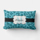 La conception d'empreinte de léopard a personnalisé le coussin lombaire aux nuances du bleu avec une rayure noire, blanc bordé avec la bannière noire que vous pouvez customiser avec votre initiale de nom et de monogramme !