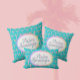 Ce Palm Springs Blue lancer oreiller avec des palmiers pastel est tellement amusant! Jouer des teintes douces multicolores sur un arrière - plan turquoise dynamique invoque l'ambiance moderne du milieu du siècle de l'oasis désert Palm Springs, Californie. Vous pouvez modifier le texte avec votre propre message !