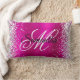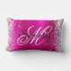 Créez votre propre parties scintillant en argent brillant et coussin lombaire brillant en papier satiné rose chaud. Les graphismes brillants sont des caractéristiques sur les bords droit et gauche. L'avant est doté d'un monogramme de script de calligraphie noir et blanc. Vous pouvez customiser la couleur et le style de police. Tous les éléments graphiques et graphiques girly de ce design seront imprimés comme une photo numérique.