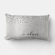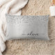 Faux d'argent Parties scintillant d'étincelle métallique broyée Monogramme de métal brossé Nom et Coussin Lumbar initial. Cela rend le cadeau parfait pour 16 ans, mariage, douche nuptiale, anniversaire, baby shower ou bachelorette pour quelqu'un qui aime le luxe glam et les styles chic.