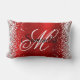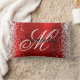 Créez votre propre parties scintillant en argent brillant et coussin lombaire brillant en papier satiné rouge brillant. Les graphismes brillants sont des caractéristiques sur les bords droit et gauche. L'avant est doté d'un monogramme de script de calligraphie noir et blanc. Vous pouvez customiser la couleur et le style de police. Tous les éléments graphiques et graphiques girly de ce design seront imprimés comme une photo numérique.