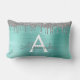 Argent et Turquoise Aqua Blue Faux Foil Métallique Parties scintillant étincelante en métal brossé Monogramme Nom et Coussin Lumbar initial. Cela rend le cadeau parfait pour 16 ans, mariage, douche nuptiale, anniversaire, baby shower ou bachelorette pour quelqu'un qui aime le luxe glam et les styles chic.