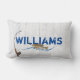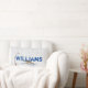 Baguette de pêche avec grand poisson dans l'eau et nom de famille sur arrière - plan nautique patiné.