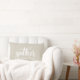 Maison de ferme rustique sur mesure coussin lombaire décorative pour l'automne saison avec un script de brosse à main "cueilli" avec nom de famille personnalisé sur le devant, motif de chèque de buffle beige sur le dos.