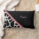 Un coussin lombaire d'impression noir et blanc à la mode de girafe avec une rayure diagonale rose attrayante girly. Personnalisez cette conception élégante de poster de animal en ajoutant votre nom. Customisez le rose attrayant du verso avec votre propre couleur faite sur commande.