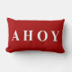 Lumbar nautique rouge et blanc de plage élégante, moderne et à la mode ou de décor côtier de navigation ou de bateau de conception ou carreau ou coussin avec un arrière - plan et un texte ou une typographie rouge de blanc "oh" sur un côté et rayures rouges et blanches de l'autre côté. Cette conception élégante contemporaine augmentera n'importe quel maison, maison de plage, chambre à coucher, sofa, salon, bureau ou bateau.