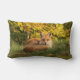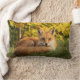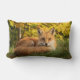Un jeune renard mignon se couche tranquillement de son endroit de repos herbeux avec un arrière - plan de couleur automne.