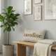 This personalized lumbar pillow features soft neutral stripes paired with bold, modern name typography. The warm, muted color palette creates a cozy, timeless look that works beautifully in bedrooms, nurseries, or reading corners. The classic stripe pattern adds gentle structure while keeping the overall feel calm and inviting. A thoughtful accent that brings personality to thoughtfully styled spaces.