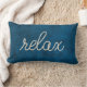 Coussin Rectangle Rope RELAX Texte Sur Cuir Bleu