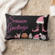 Coussin Rectangle Salutations de saison - rose sur noir |