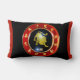Ce coussin lombaire affiche la roue zodiaque Leo avec des panneaux principaux et autres panneaux célestes autour de l'extérieur de la roue avec un style et un thème rouge et doré sur l'avant et l'arrière du panneau avec tissu tricoté doux sans rides a une fermeture à glissière cachée comprenant insert rempli de synthétique. Tous les coussins sont fabriqués à 100% polyester avec une sublimation de haute qualité impression recto verso.