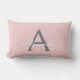 Monogramme rose et gris Ajoutez votre propre nom Lumbar Coussin. Cela rend le cadeau parfait pour 16 ans, mariage, douche nuptiale, anniversaire, baby shower ou bachelorette pour quelqu'un qui aime le luxe glam et les styles chic.