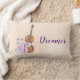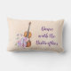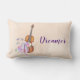 Une coussin lombaire au design féminin. Illustré d'une aquarelle représentant un violon en bois, des pantoufles de ballet rose se reposent contre elle et sont décorés de fleurs et de papillons. Placez-vous sur un arrière - plan rose pêche. L'avant dit Dreamer et l'arrière dit Danser avec les papillons. Le texte peut être personnalisé si vous le souhaitez.
