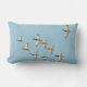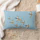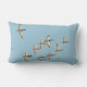 Dix canards colverts volent en formation dans un ciel bleu éclatant.