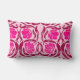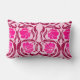 Lumbar coussin dans un vintage William Morris motif textile de fleurs et feuilles stylisés en pimpernel - fleurs dans un dégradé de lumière à rose fuchsia foncé, accentué de bordeaux, sur un arrière - plan rose pastel