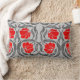 Coussin Lumbar dans un vintage William Morris motif textile de fleurs et de feuilles stylisés en pimpernel - fleurs dans un dégradé foncé à rouge vif, avec feuilles gris graphite / gris, sur un arrière - plan gris argenté clair