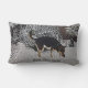 Coussin Rectangle Winter snow scene with cute black and tan dog