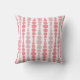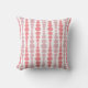 Cet oreiller de lancer a un design moderne du milieu du siècle de rectangles ronds roses et lavande dans la taille croissante et décroissante en courant verticalement sur un champ de blanc.