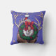 Un casquette du Père Noël rouge et blanc éclatant, perché entre un grand porte-bois, présente l'oeuvre originale d'un renne décoré pour Noël avec un oreiller jeté. Ce renne humoristique se dresse dans un paysage enneigé avec un ciel étoilé texturé et une bordure ondulée d'un bleu et d'une orange amusants. Sur beaucoup de nos cadeaux et accessoires uniques, vous trouverez les rennes amusants qui vont et viennent avec la tête du renne d'un côté et le dos du renne de l'autre. Ce caribou qui aime les vacances porte une couronne sainte avec un arc rouge vif sur son dos. Partagez un sourire aujourd'hui avec cet amant des rennes, amoureux des caribous, amoureux des animaux, amoureux des animaux sauvage, amoureux de l'art amusant sur votre liste de cadeaux cette saison de fêtes.