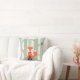 Coussin mignon et d'amusement comportant une illustration de bande dessinée d'un petit renard se reposant sur une roche dans la forêt. Près de lui sont les champignons colorés et un petit oiseau jette un coup d'oeil d'un nid dans un des arbres. Illustration par Mhea.