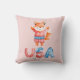 Un mignon oreiller à jetons patriotique pour les enfants chambre avec renard aquarelle habillé en tenue patriotique avec étoiles et rayures "USA"