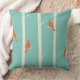 Un coussin avec une illustration de bouleaux avec des orangers assis sur leurs branches. Arrière - plan vert rétro.