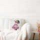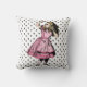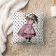 Alice portant une robe rose avec un arrière - plan de coeur noir et blanc