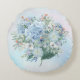 Cette jolie coussin ronde est ornée d'un bouquet d'hydrangées dans de jolis tons bleus.